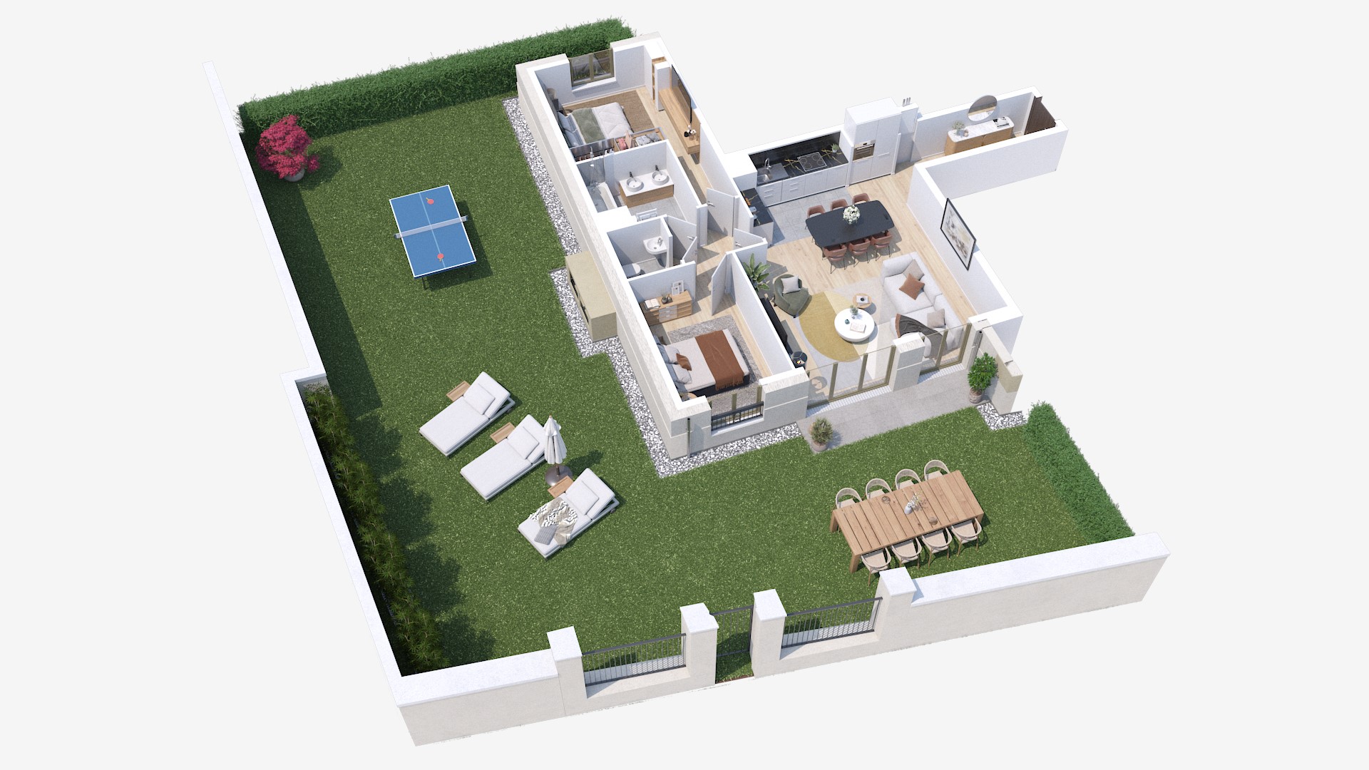 69.45 m² + Terrasse : 4.62 m² + Jardin : 163.52 m² | 560 000 € hors cave hors parking | Visualiser - RDJ Visualiser plan 3D |